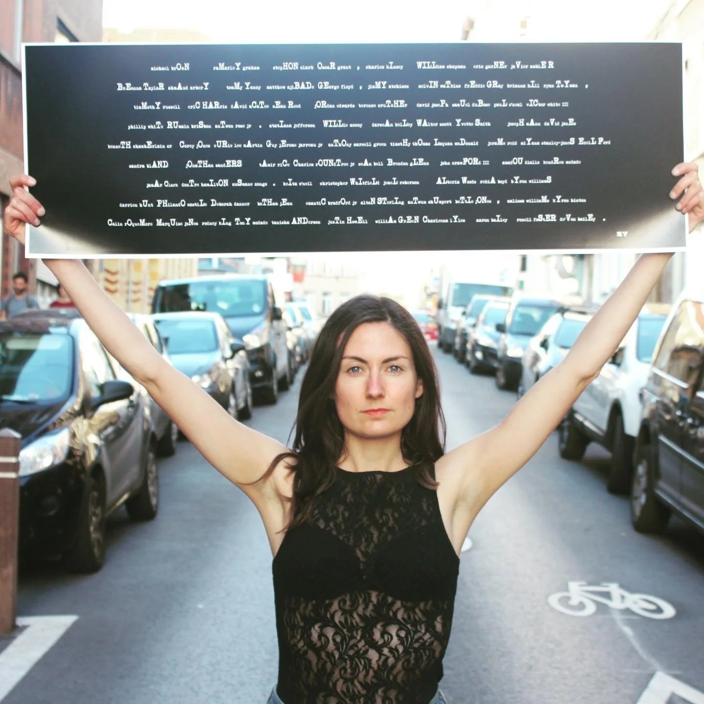 “Oath of dishonor” depicts the Law Enforcement Oath of Honor, spelled out by the names of people of color who have fallen victim to police brutality in the United States.